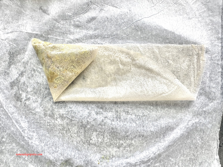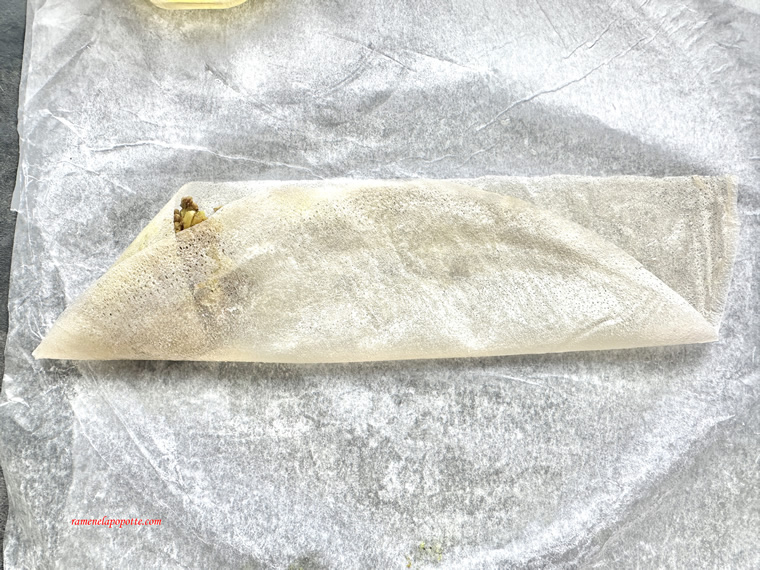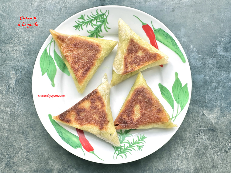 Pour la cuisson, 2 possibilités : à la poêle ou au four. La texture est différente et est une question de goût. Là encore, j’ai mis une photo des 2 rendus ; la cuisson au four fait plus feuilletée.