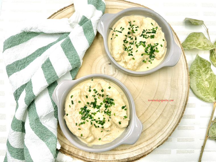 Cassolette poulet crème moutarde ciboulette