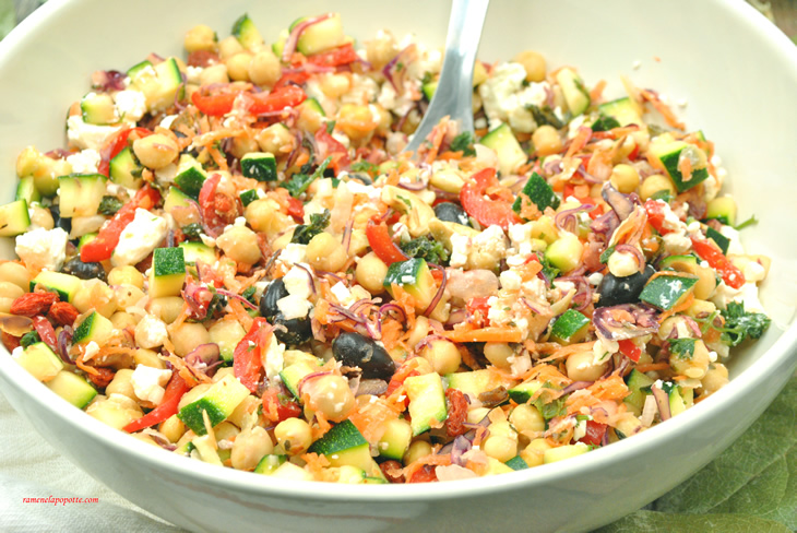 Mettre tous les ingrédients dans un saladier et mélanger. Conserver au frigo si la salade n’est pas dégustée de suite.
