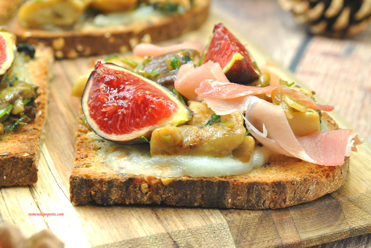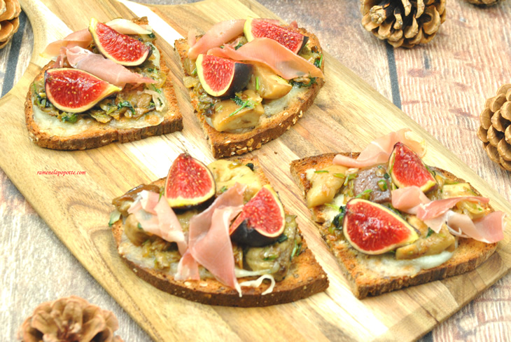Tartines cèpes jambon fromage